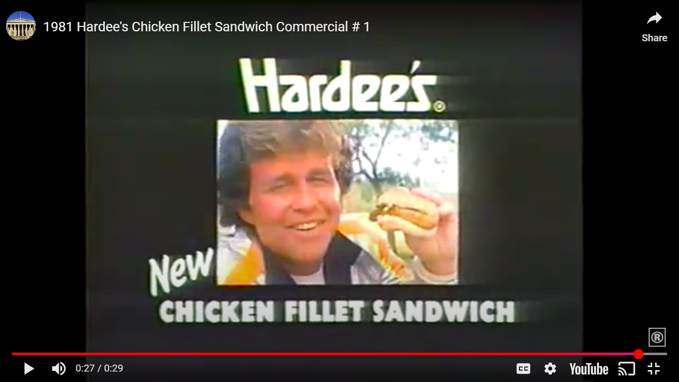 1981 Hardee's Chicken Fillet Sandwich Commercial # 1 & # 2