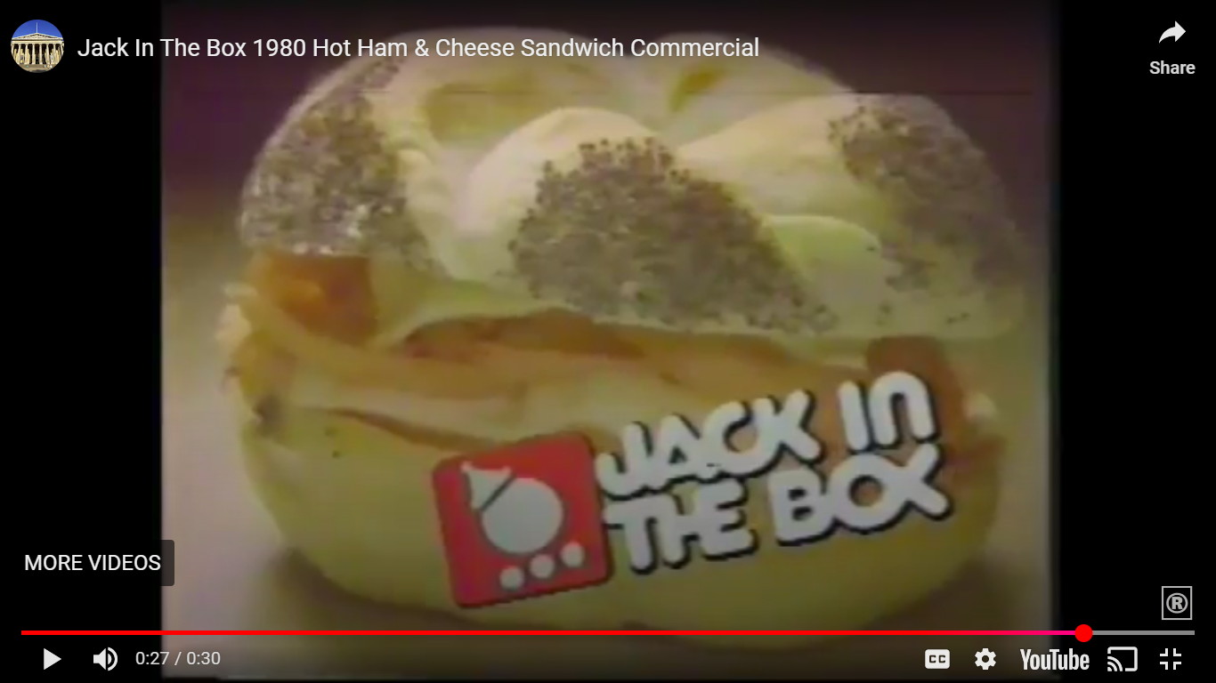 Jack In The Box 1980 Hot Ham & Cheese Sandwich Commercial